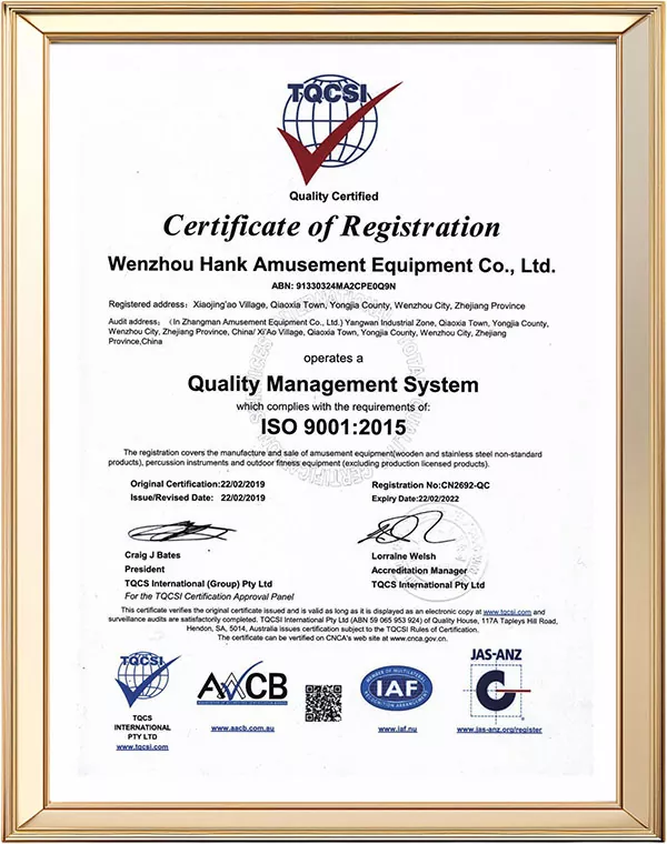 1Prowadzimy zaawansowane badania w zakresie produkcji plenerowych instrumentów perkusyjnych. W celu podnoszenia jakości i poziomu usług nasi pracownicy ukończyli szkolenia z zakresu kontroli jakości oraz utworzyli dedykowany dział kontroli.